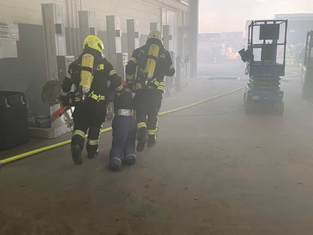 Denn neben bereits vielfach geprobten Verhaltensabläufen stimmte auch das theoretische Wissen der Belegschaft. Etwa bei Fragen wie „Was kann ich persönlich tun, um potenzielle Gefahrenquellen an meinem Arbeitsplatz zu vermeiden?“. „Was sind die häufigsten Brandursachen am Arbeitsplatz?“ oder „Wie verhalte ich mich als Nicht-Feuerwehrmann, wenn Personen vermisst werden und jede Sekunde zählt?“