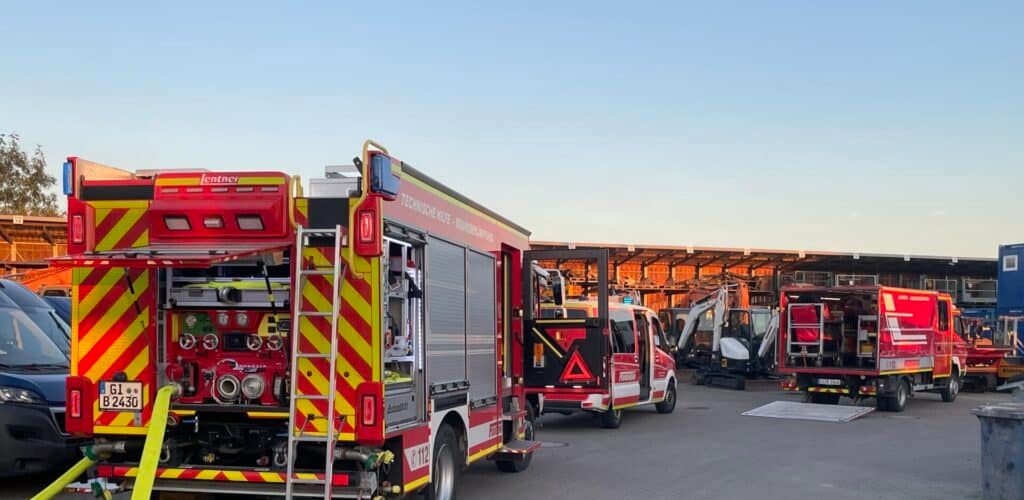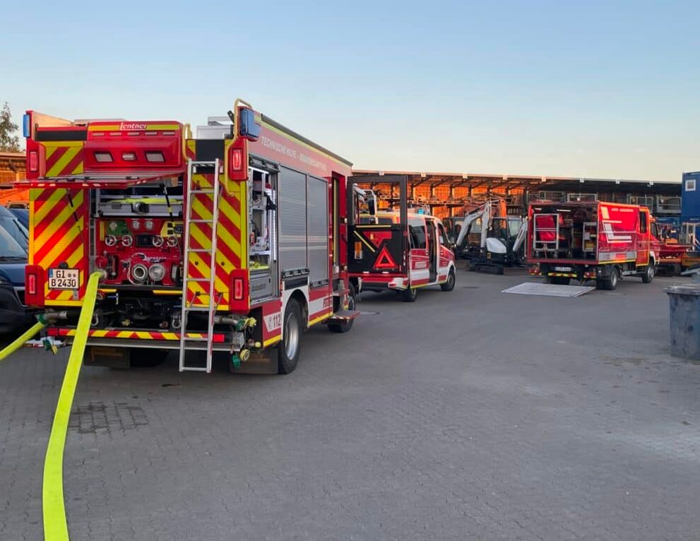 Nur wenige Minuten später trifft die zum Glück umgehend von Werkstattleiter Carsten Hegebarth alarmierte Feuerwehr mit mehreren Zügen und 16 Einsatzkräften der Wachen Alten-Buseck und Trohe ein. Routiniert gehen die Mannschaften in perfekter Abstimmung gegen das augenscheinliche Chaos vor Ort ein, bringen Ruhe in die Situation, den Herd der Rauchentwicklung unter Kontrolle und alle Mitarbeiter der Niederlassung in Sicherheit.
