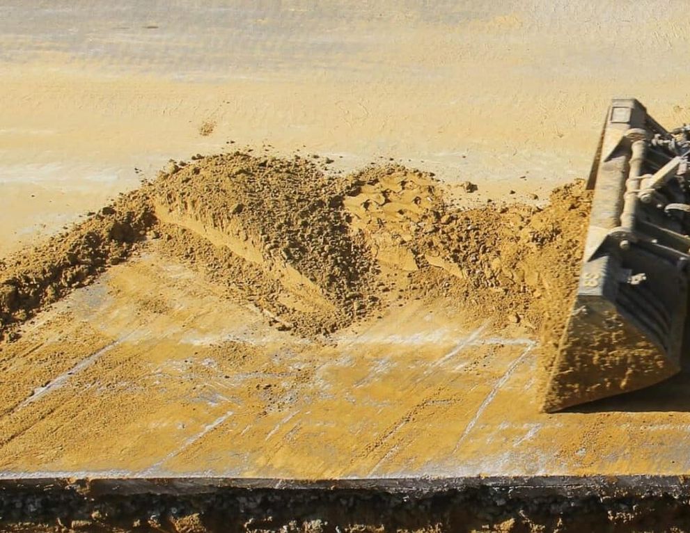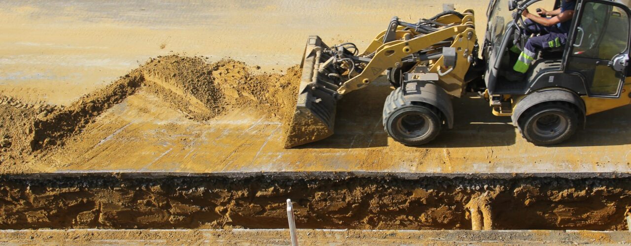 - Eine weitere Sandschicht wird eingebracht – mithilfe von Dumper und Radlader.
