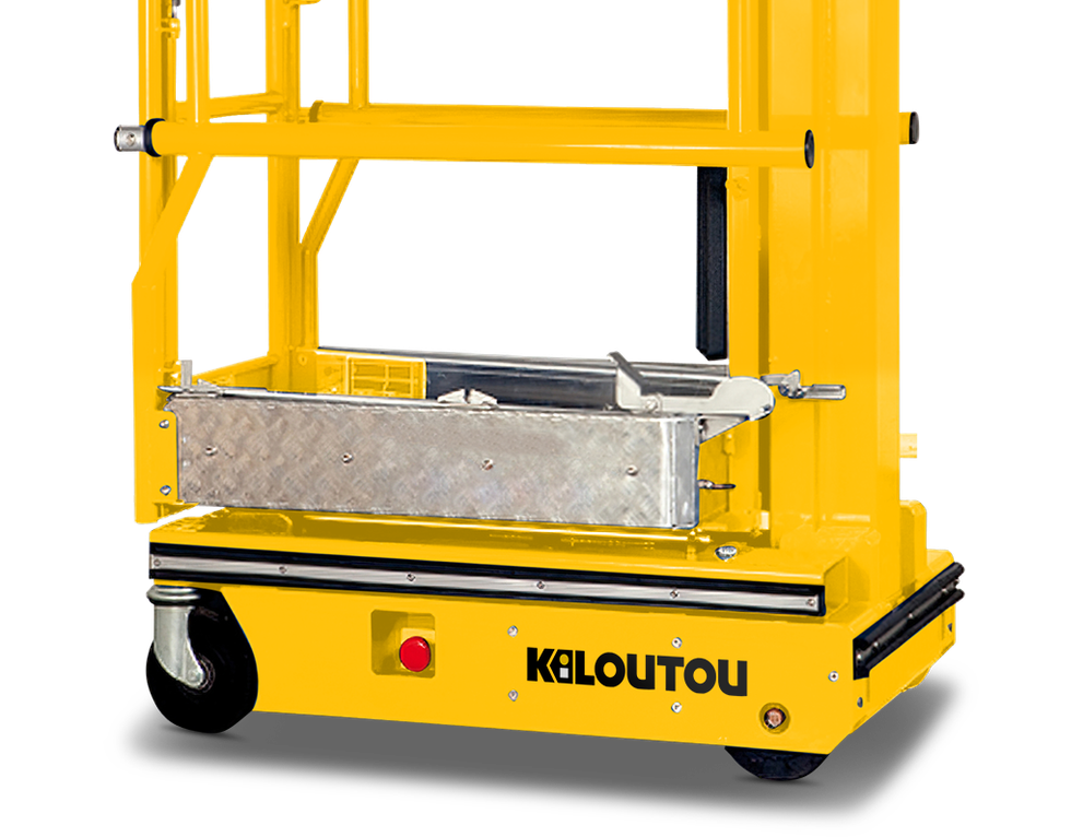 Diese selbstfahrende Vertikalmastbühne eignet sich perfekt für Arbeiten in beengten Räumen (Gänge, Flure, Türöffnungen, zwischen Regalen usw.). Sie bewegt sich an den engsten Stellen und passt durch jede Tür. Sie kann auf allen Arten von Böden eingesetzt und dank ihrer geringen Abmessungen (1,20 × 0,75 × 1,59 m) und ihres geringen Gewichts (480 kg) problemlos in Aufzügen und Lastenaufzügen transportiert werden. Sie ist für Arbeiten in geringer Höhe von 4,5 m (Wartung, Inventur, Einkaufszentren, Lagerhallen usw.) konzipiert und bietet Platz für 1 Bediener und 200 kg Nutzlast im Korb.