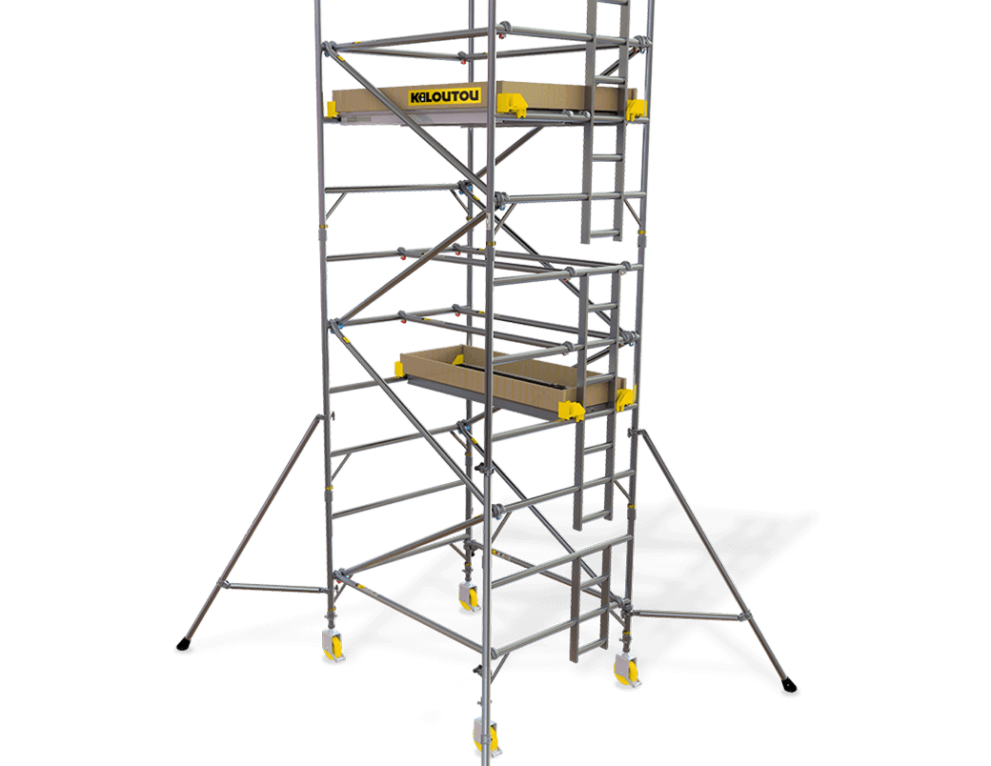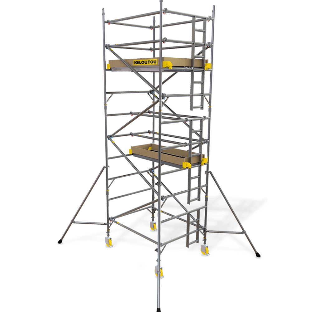 Alquiler Andamio de aluminio ancho con ruedas – 4,20 m – 2 plataformas – 1,85 × 1,35 m
