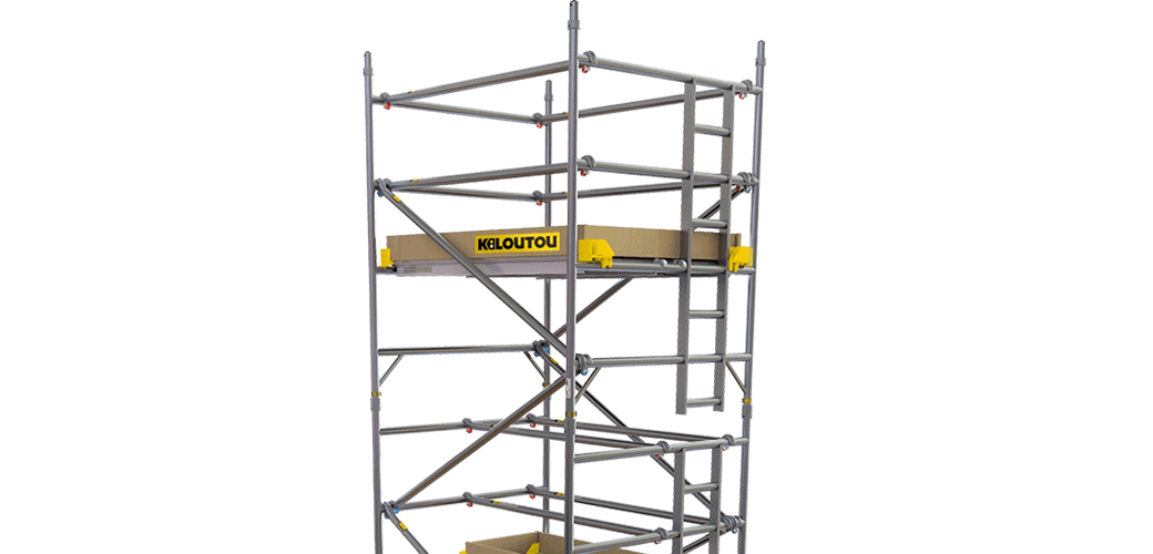 Alquiler Andamio de aluminio estrecho con ruedas – 6,20 m – 3 plataformas – 1,85 × 0,75 m