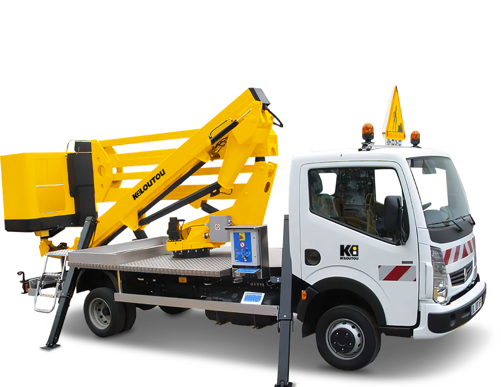 Bajo solicitud, ofrecemos placas de reparto de las cargas y estabilizadores. Con relación a las cestas, hay disponibles distintas opciones, de aluminio o de fibra. Para alquileres de larga duración y para los trabajos eléctricos con alta tensión, Kiloutou ofrece la posibilidad de instalar una cesta aislada. Los chasis de nuestros camiones generalmente son de la marca Renault o Iveco.