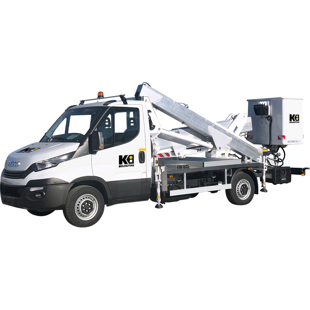 Este camión cesta ligero dispone de un brazo elevador telescópico que permite alcanzar los 21,20 m de altura y los 9,80 m de desplazamiento horizontal. Su brazo articulado y la rotación 400° de su torreta ofrecen una amplia zona de trabajo. Su cesta, con una carga útil de 200 kg, admite a dos operarios. La cabina tiene los acostumbrados dos asientos. También incluye una caja de almacenamiento para guardar objetos.