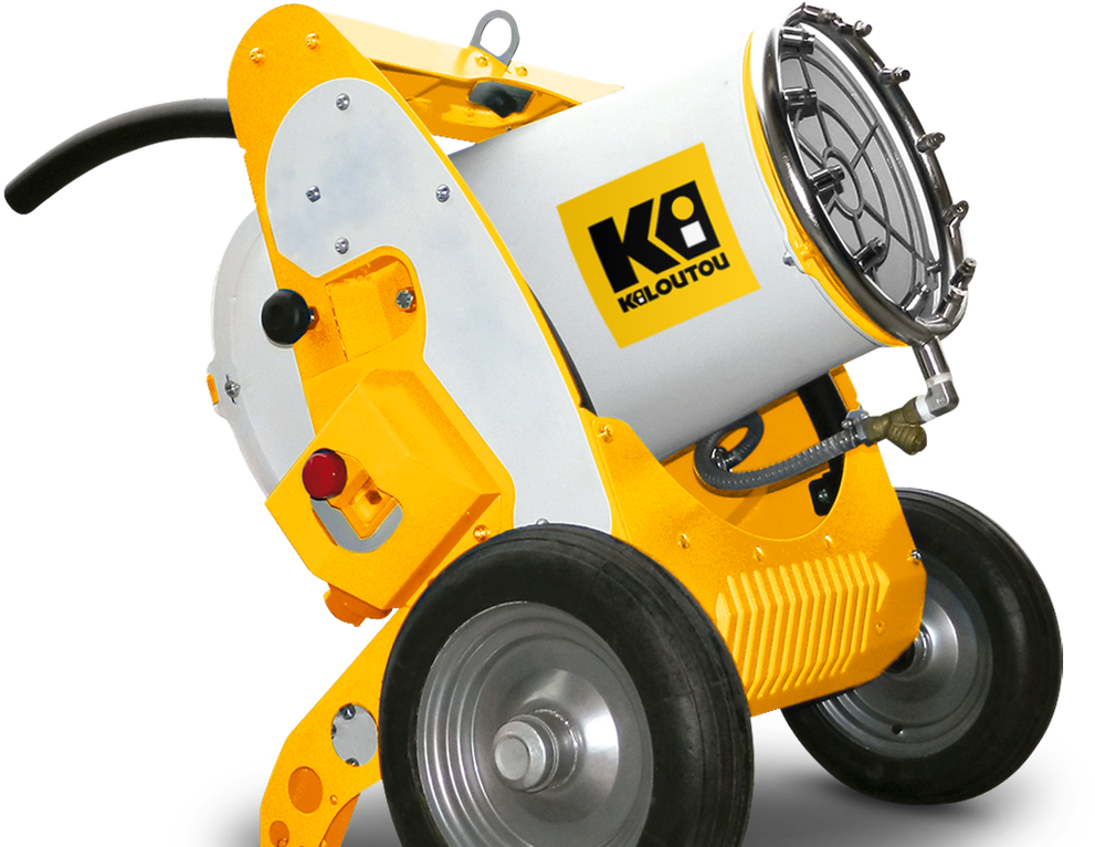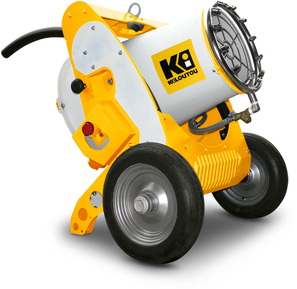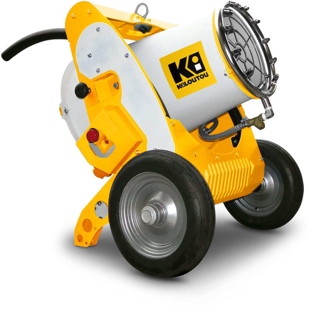 Este cañón nebulizador sirve para limpiar el polvo. También se llama colector de polvo. El cañón nebulizador genera micro-gotas de agua que fijan el polvo al suelo por gravedad. El consumo de agua depende de la presión de funcionamiento, de 5,4 l/min a 1 bar a 8,5 l/min a 2,5 bar. Se mueve fácilmente por el lugar de trabajo gracias a sus dos grandes ruedas.