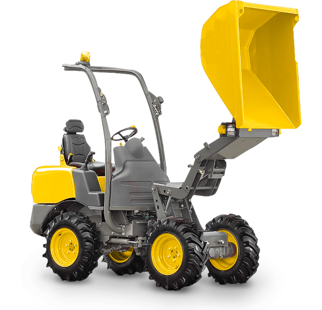 El dumper térmico frontal es un equipo robusto y eficiente, diseñado para el transporte de materiales pesados en obras y entornos industriales. Su tolva frontal de gran altura permite descargar directamente en camiones, silos o zonas elevadas, reduciendo el tiempo de carga y mejorando la productividad. Gracias a su tracción integral, se adapta a diferentes tipos de terreno, incluso con desniveles o condiciones exigentes.