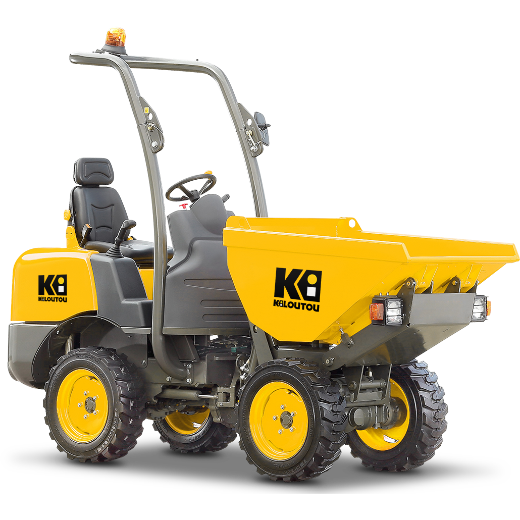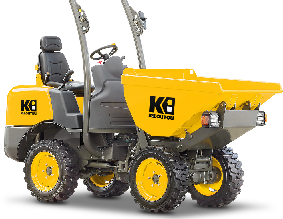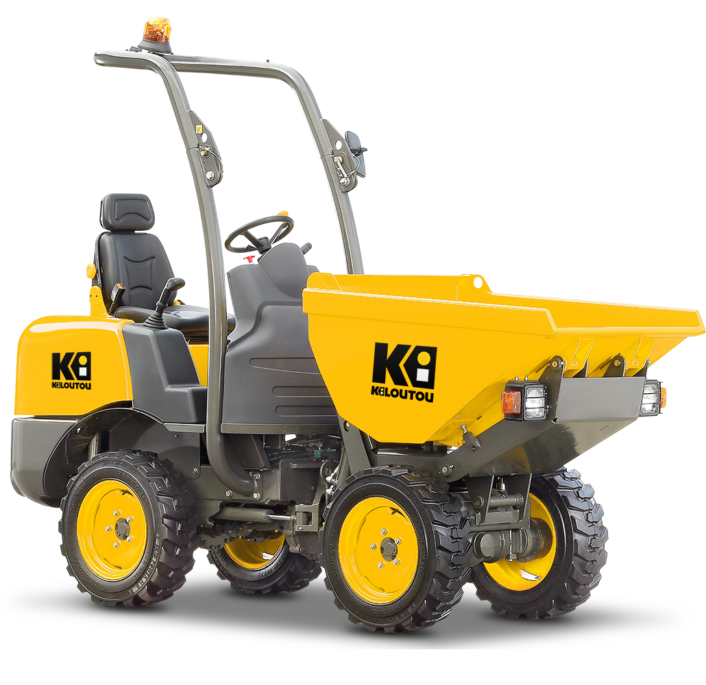 Este modelo de dumper permite realizar un vertido frontal y basculante en altura (altura de vertido de 1,63 m). Es capaz de transportar 1,1 toneladas de material en su volquete de 395 litros.