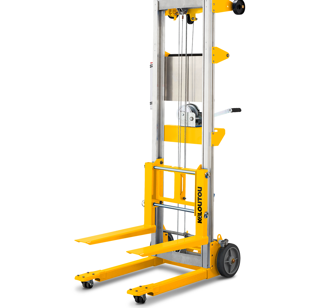 Con una altura de elevación de 3,10 m y una capacidad de carga de 180 kg, este elevador de materiales (o elevador de cargas) te permite manipular cargas para trabajos de calefacción, ventilación, aire acondicionado, electricidad, fontanería, pintura, etc.. Robusto y seguro, cuenta con dos estabilizadores y un sistema de frenado automático en bajada. Es totalmente manual, no requiere conexión eléctrica y puede subirse y bajarse utilizando únicamente una manivela que acciona un cable mediante un sistema de poleas.