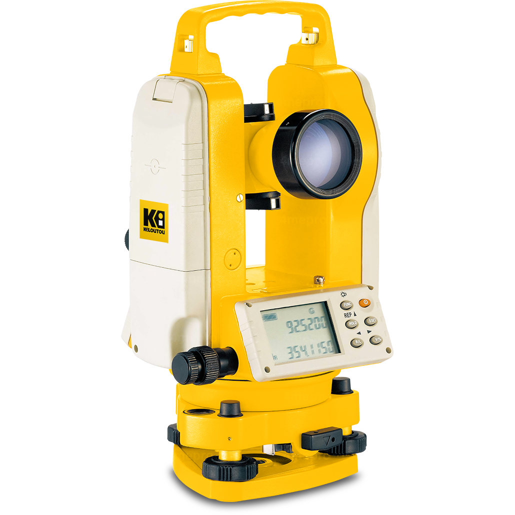 Esta estación total completa digital fácil de usar y de leer tiene una resolución de 10″ o 20″ con una precisión de 20″. Permite medir ángulos, distancias y azimuts de forma eficaz.