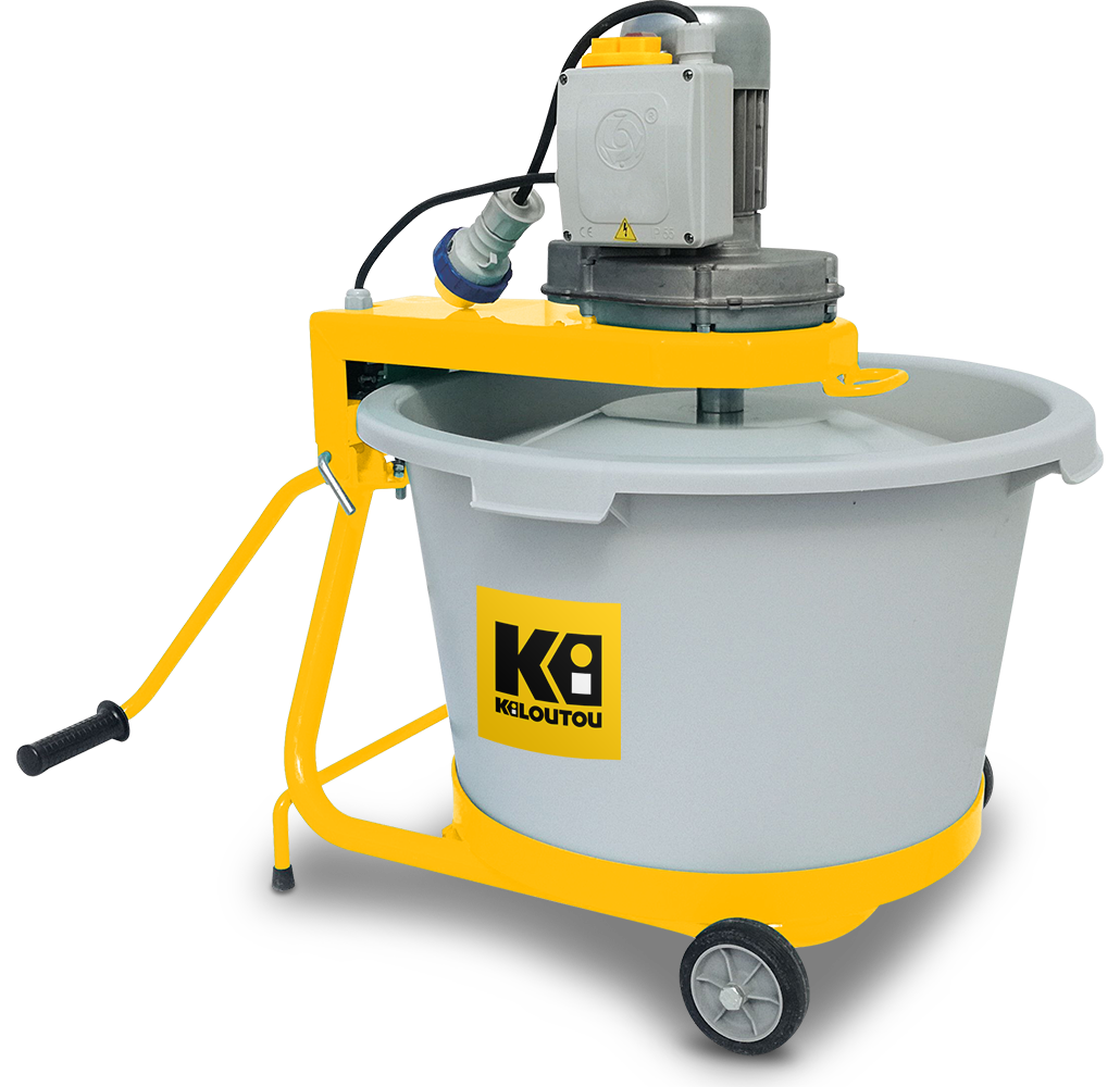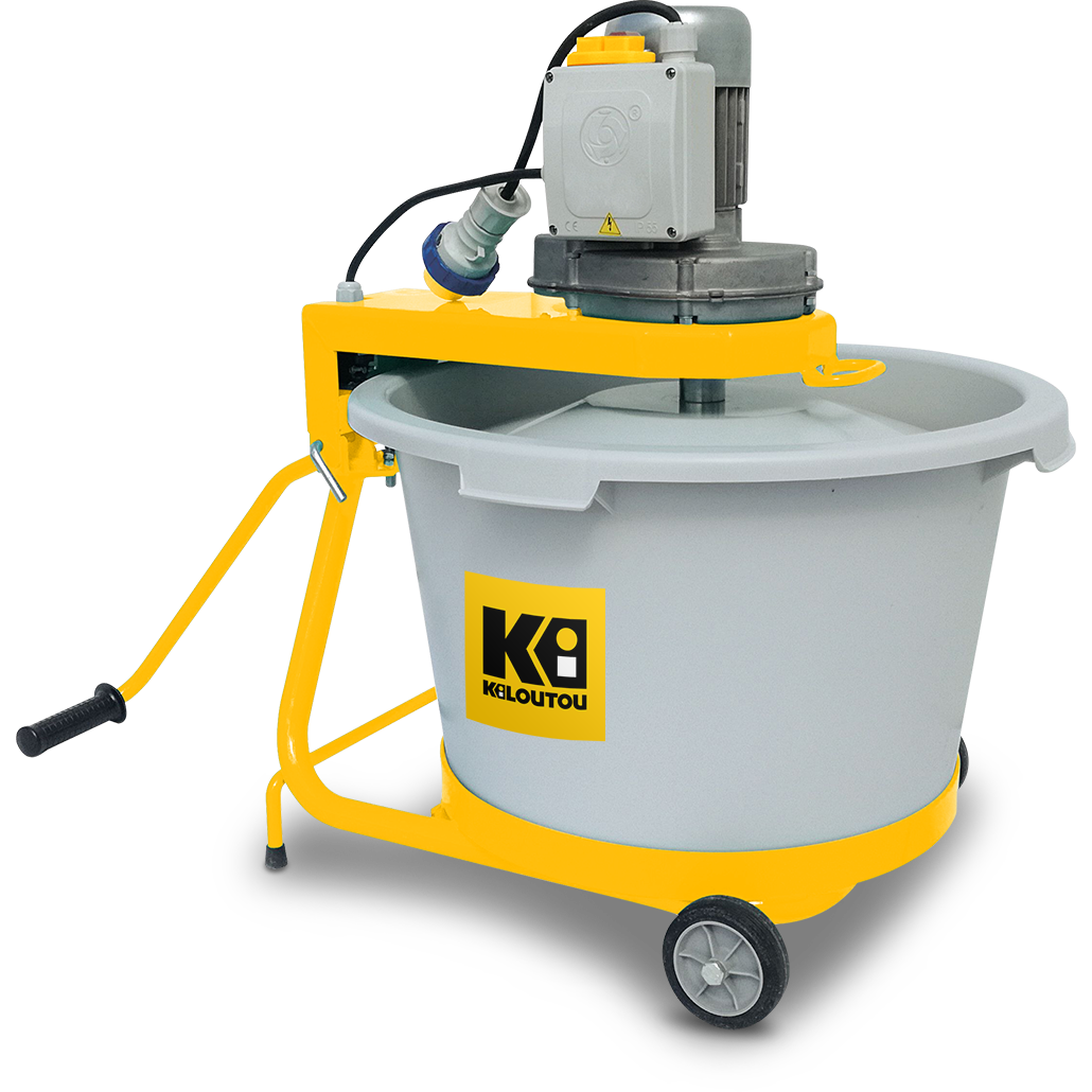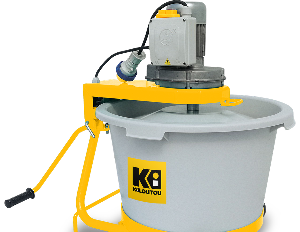 Esta mezcladora eléctrica tiene un depósito de 65 litros. Se utiliza normalmente para hacer mezclas homogéneas de materiales finos en pequeñas cantidades como cemento, cola, yeso, resina de cuarzo y lechada de cemento para juntas. Esta mezcladora es especialmente adecuada para obras pequeñas y trabajos de renovación.