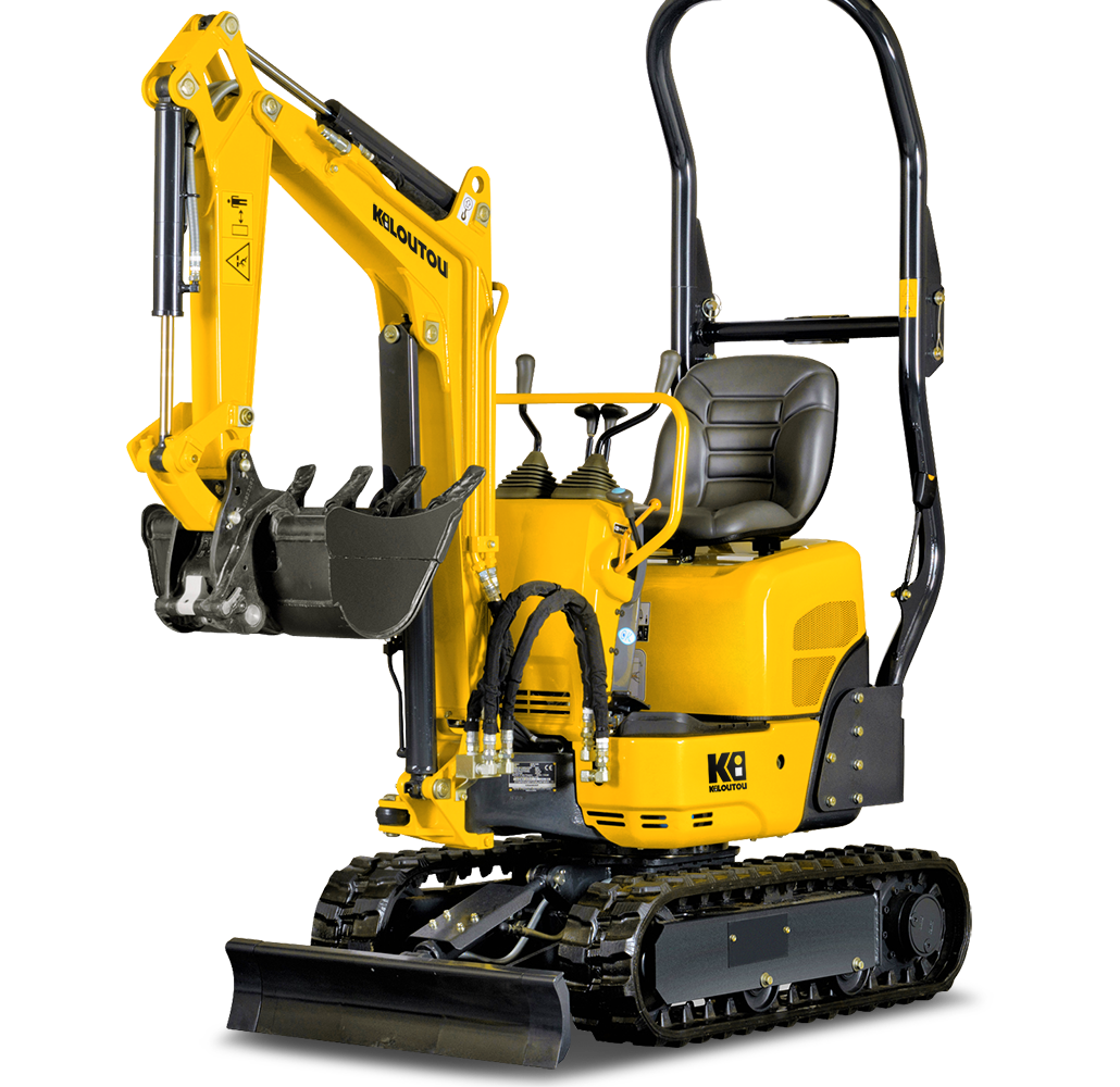 Esta miniexcavadora, también llamada microexcavadora, es versátil y especialmente adecuada para trabajos en espacios reducidos: cavar cimientos, realizar zanjas para saneamientos, desescombrar un terreno o incluso preparar la plantación de setos. Por lo general, sus aplicaciones habituales son la excavación, la nivelación de suelos, el paleo, la realización de zanjas y la carga. Esta excavadora está equipada con un motor diésel de 10,5 CV (7,7 kW a 2400 rpm). Sus orugas de goma atenúan las vibraciones y son menos ruidosas que unas cadenas de acero.
