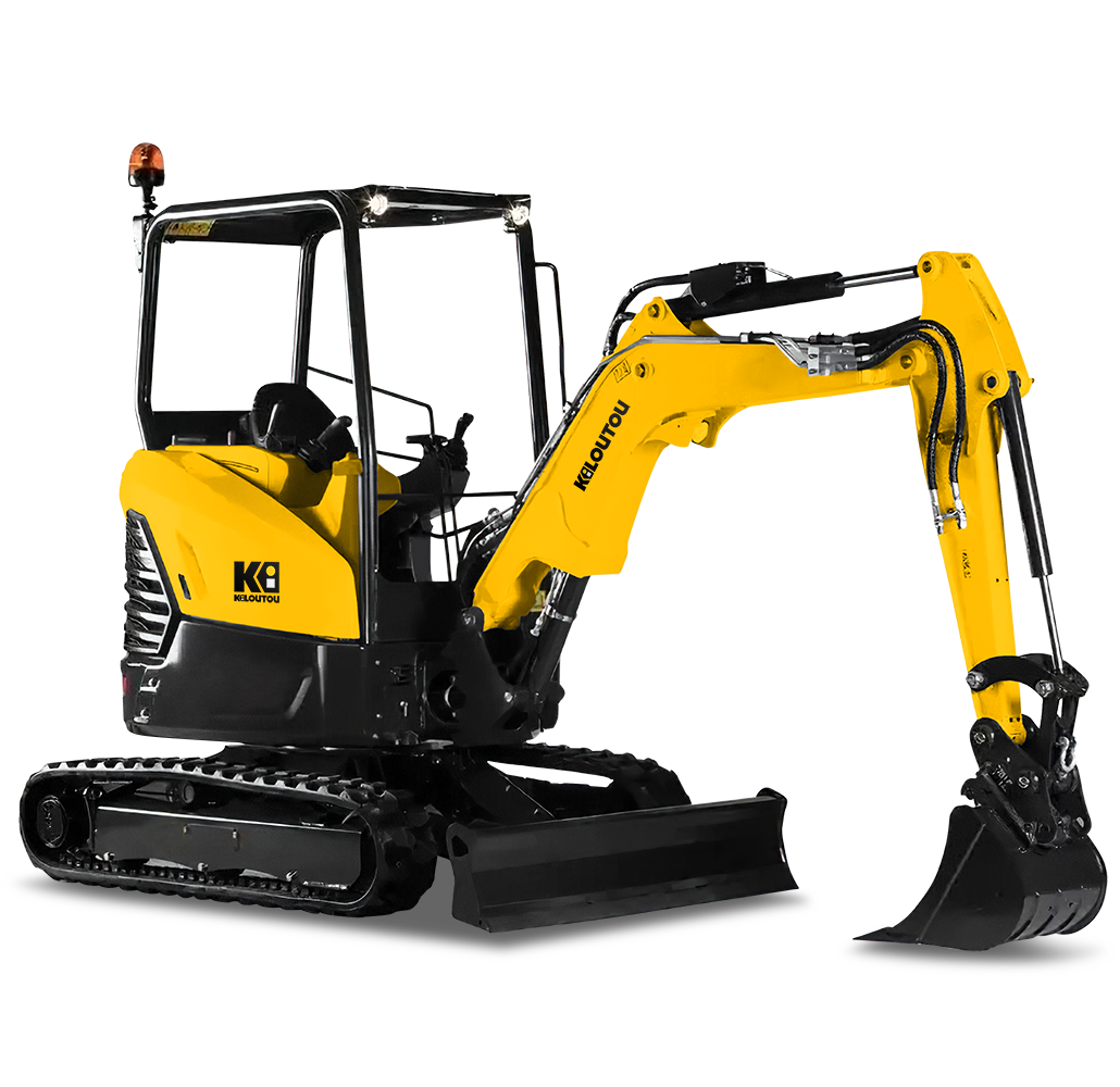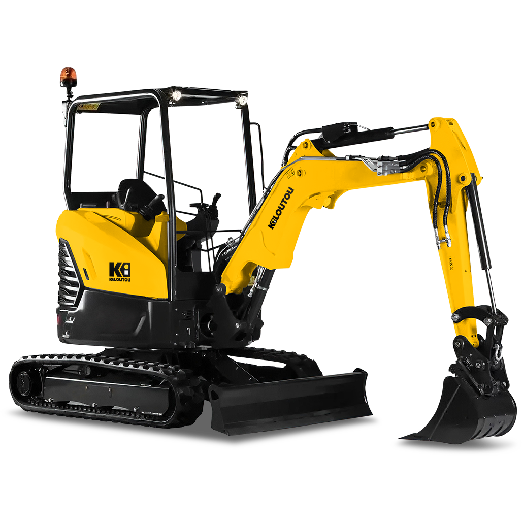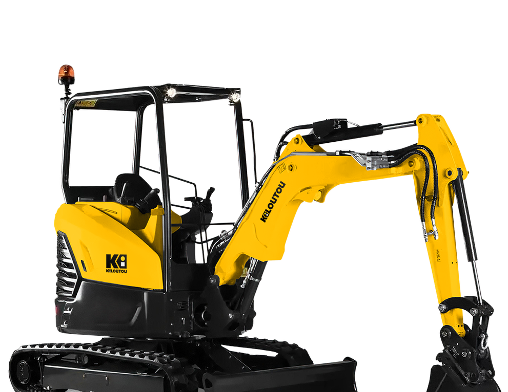 Gracias a su balancín, esta excavadora tiene una altura máxima de descarga de 3,05 m y una profundidad máxima de excavación de 2,49 m. La fuerza máxima de excavación (cuchara) es de 2150 daN. La torreta ofrece una rotación de 360°. El brazo de la excavadora puede girar 80° a la izquierda y 60° a la derecha. La velocidad de desplazamiento de esta excavadora es de 2,8 km/h (lenta) y 4,4 km/h (rápida). Por último, dispone de una cuchilla de terraplenado de 1400 mm x 300 mm. Esta miniexcavadora de 2,6 toneladas se entrega con 3 cucharas (2 cucharas retro y 1 cuchara de excavación).