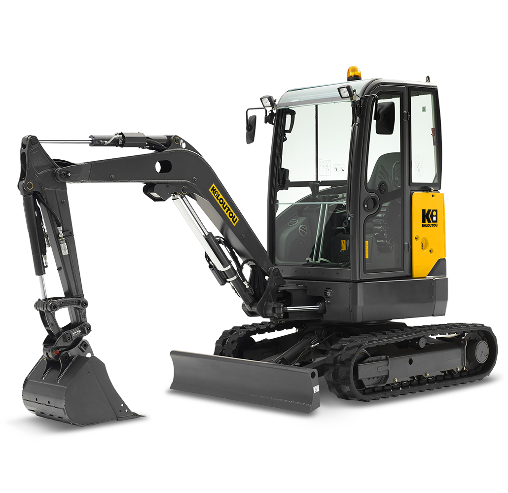Esta excavadora (o miniexcavadora) con cabina es versátil y es especialmente adecuada para trabajos en espacios reducidos: cavar cimientos, realizar zanjas para saneamientos, desescombrar un terreno o incluso preparar la plantación de setos. Por lo general, sus aplicaciones habituales son la excavación, la nivelación de suelos, el paleo, la realización de zanjas y la carga. Esta excavadora está equipada con un motor diésel de 32,7 CV y cuenta con un depósito de 53 litros. Sus orugas de goma, de 32 cm de ancho, atenúan las vibraciones y son menos ruidosas que unas cadenas de acero. Es capaz de superar pendientes de hasta 26°.