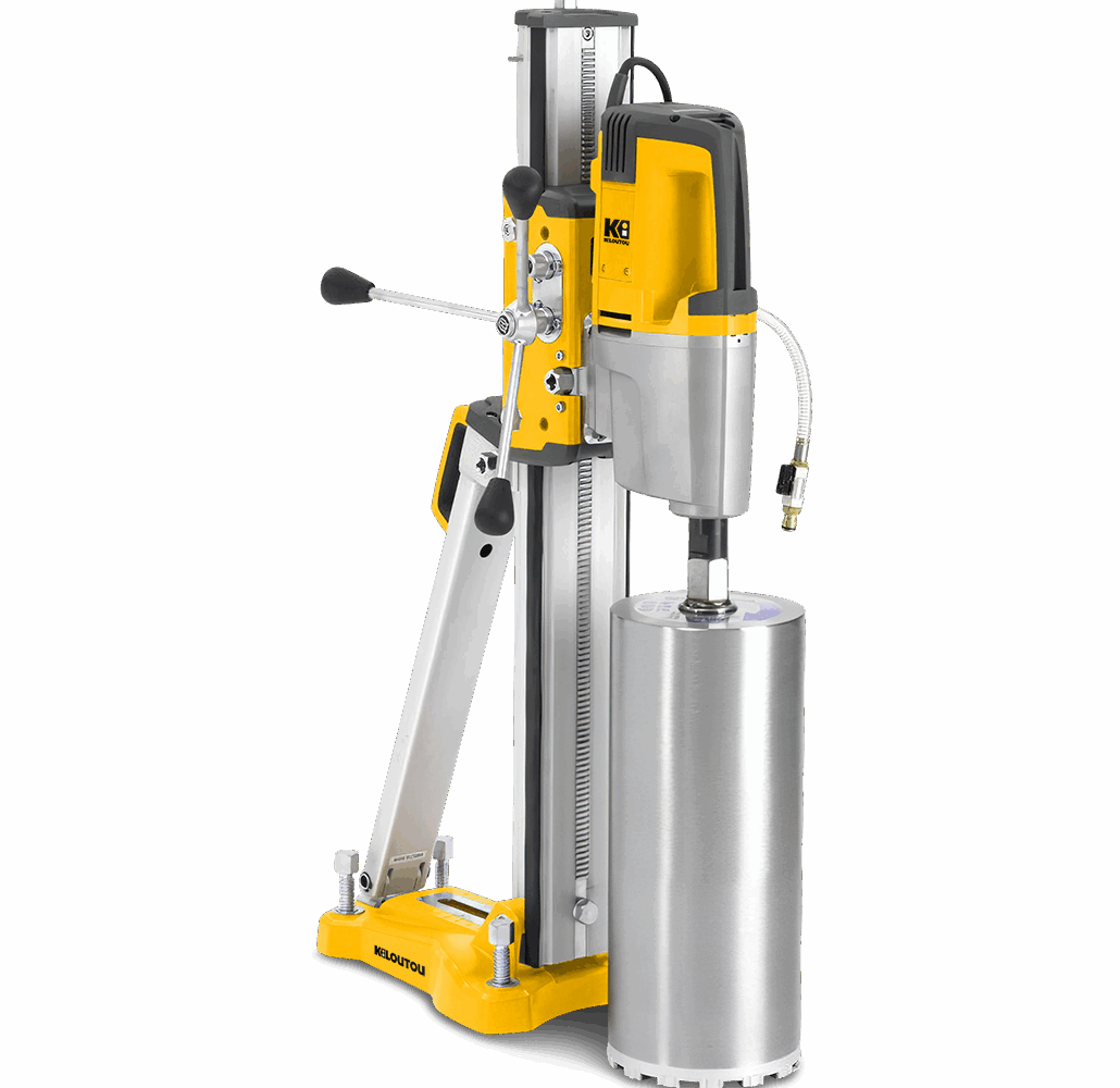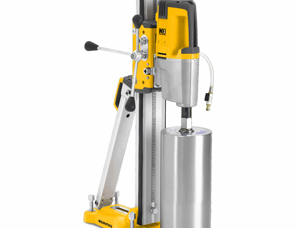 Esta perforadora de núcleo de diamante montada en columna (también llamada taladradora de diamante, taladro sacanúcleos o taladro para hormigón) está diseñada para realizar perforaciones de precisión de hasta 350 mm de diámetro. Está equipada con un sistema de aspersión que reduce la emisión de polvo y garantiza una perforación de diamante con agua eficaz.