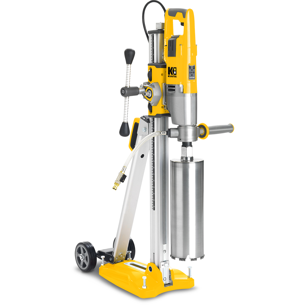 Esta perforadora de núcleo de diamante (también conocida como perforadora de diamante, perforadora de corona de hormigón o perforadora de hormigón) perfora hormigón armado, bloques de hormigón y ladrillos para pasar tuberías. Cuenta con un sistema de aspersión que reduce la emisión de polvo y garantiza una perforación de diamante con agua eficaz.