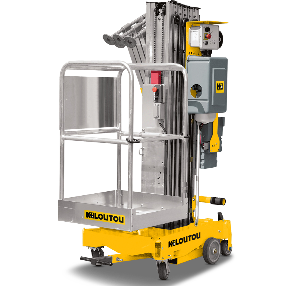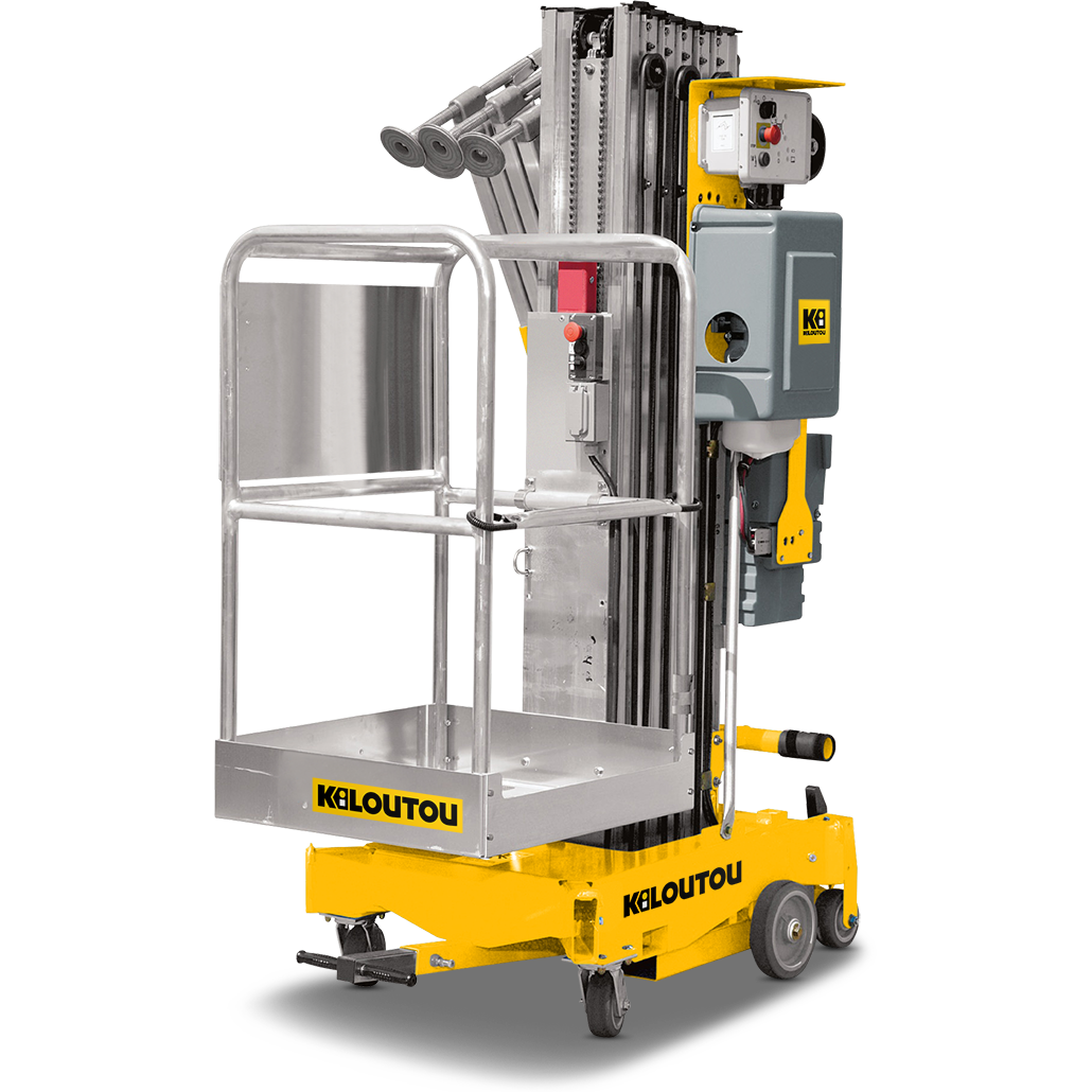 Este elevador de mástil vertical no es autopropulsado, ya que la traslación no es eléctrica. El mástil solo puede elevarse eléctricamente cuando la plataforma descansa sobre los cuatro estabilizadores desplegados. Está diseñada para trabajar en espacios reducidos (pasillos, corredores, portales, entre estanterías, etc.) gracias a su anchura de 0,74 m y para suelos frágiles (peso de solo 336 kg). Ideal para trabajos a grandes alturas (mantenimiento, inventario, centros comerciales, almacenes…) se eleva hasta 10,8 m, puede transportar un operario y soporta 159 kg de carga útil en la cesta.