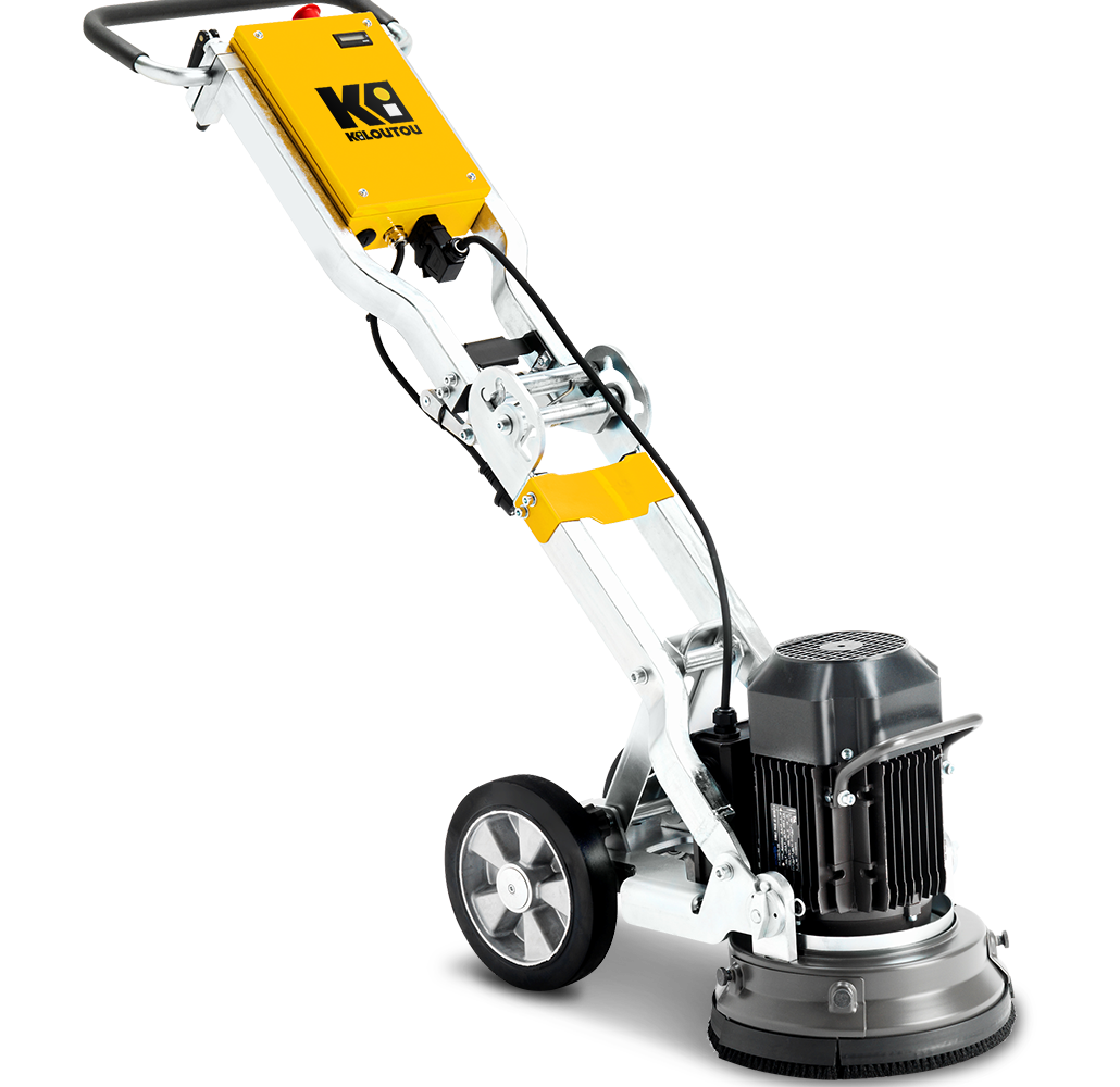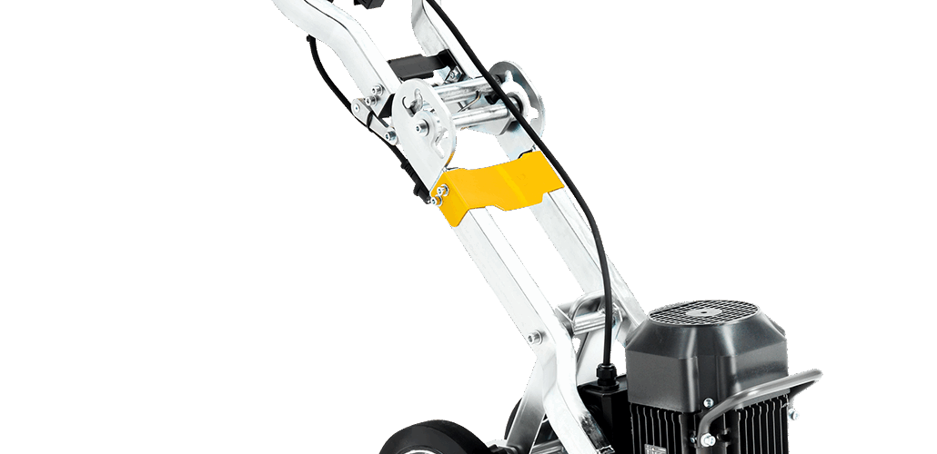 Esta desbastadora-pulidora (o pulidora-desbastadora) es la máquina ideal para el decapado, el desbaste, la rectificación y el pulido de suelos de hormigón y para lijar restos de resina, pintura o adhesivos sobre superficies de tamaño mediano. A cada lado del cárter de protección hay una parte que se retira fácilmente; esto, junto al ajuste de las ruedas, permite pasar rápidamente a la función de pulido a ras de pared. La potencia eléctrica de esta máquina es de 2200 W. La velocidad de rotación del plato es de 1410 rpm. El nivel de vibraciones mano izquierda/mano derecha es de 4/3,8 m/s², lo que permite un tiempo de exposición diaria máximo de 8 horas.