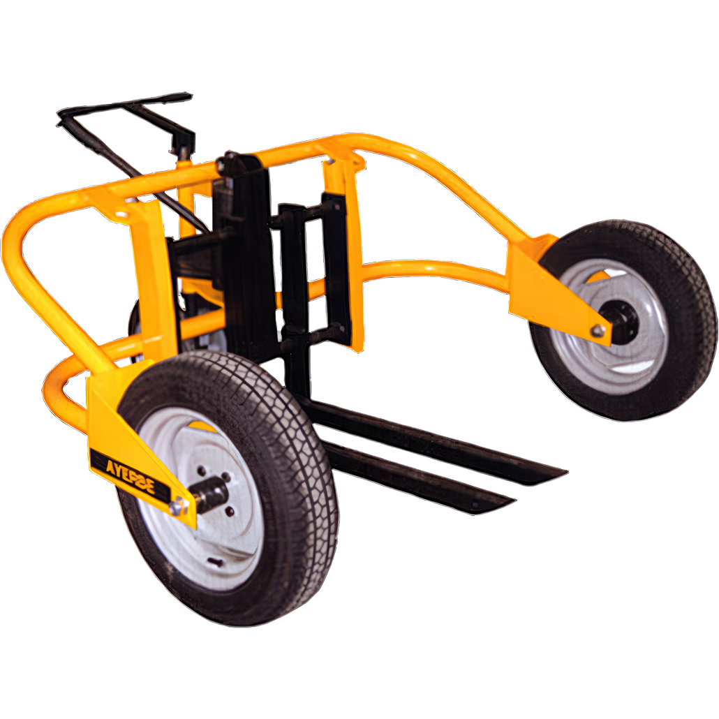 La transpaleta de obra de 1,5 t en alquiler es una herramienta robusta y funcional pensada para mover cargas pesadas en terrenos irregulares, superficies sin pavimentar o zonas de difícil acceso. Su diseño manual, junto con ruedas neumáticas y horquillas resistentes, garantiza un transporte eficiente y seguro de materiales en obra.