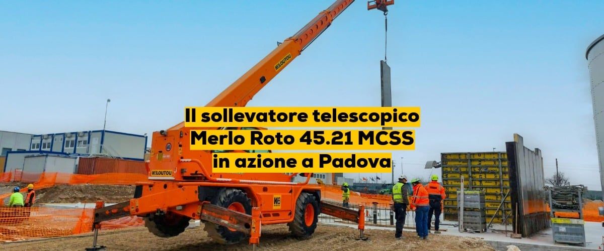 In provincia di Padova è in corso la costruzione di un importante centro logistico. Tra i mezzi impiegati c’è un sollevatore telescopico Merlo Roto 45.21 MCSS, noleggiato dalla filiale di Padova.