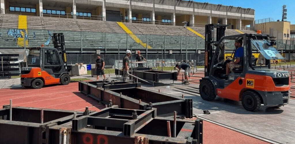 L’organizzazione di eventi sportivi, concerti, spettacoli e congressi, richiede la partecipazione e il coordinamento di più persone. Progettisti, tecnici, montatori, impiantisti e meccanici vengono coinvolti nell’allestimento e disallestimento di palchi, impianti d’illuminazione, postazioni video e scenografie. Si tratta di un lavoro che l’impiego di piattaforme aeree, sollevatori o carrelli elevatori, rende molto più veloce e sicuro. Sebbene siamo associate alla costruzione o manutenzione, grazia alla loro versatilità queste macchine svolgono un ruolo cruciale anche nel campo dell’intrattenimento, sia all’aperto che al chiuso. Non solo permettono di lavorare su terreni irregolari, ma grazie alla bassa rumorosità o all’assenza di emissioni, possono essere utilizzate all’interno di palazzetti, sia in fase di allestimento che durante gli eventi, senza interferire con il loro svolgimento.