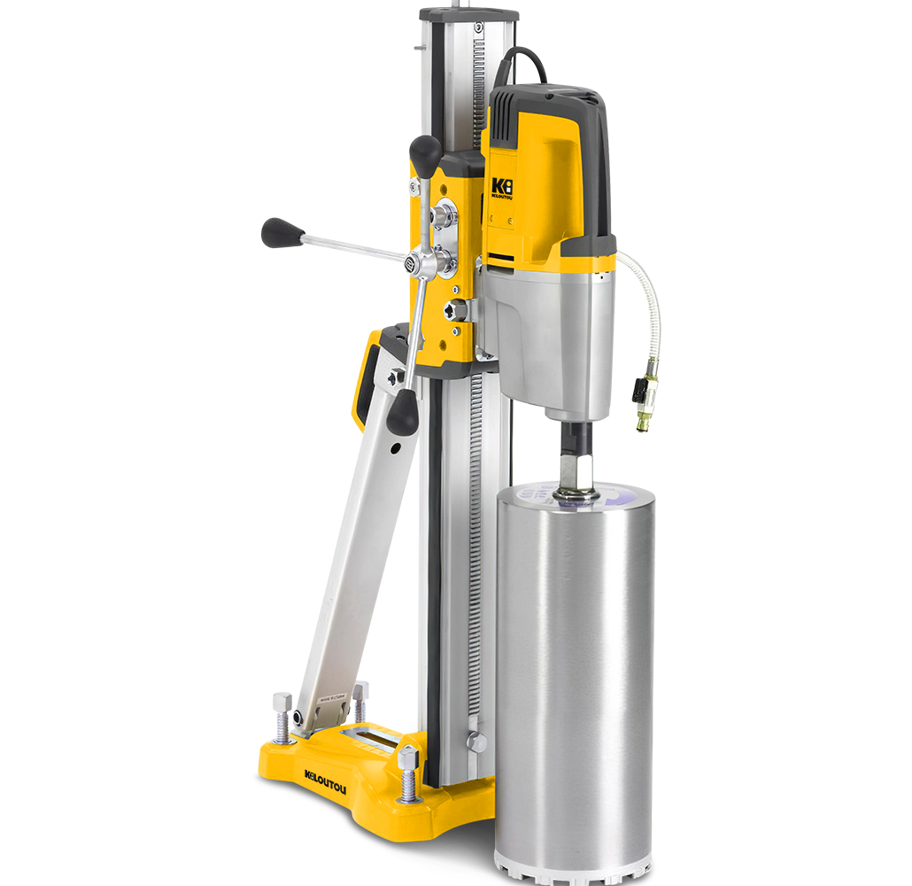 Questa carotatrice a colonna è progettata per il carotaggio/foratura di precisione fino a 450 mm di diametro. È ideale per la perforazione di calcestruzzo, mattoni o tutti i tipi di materiali a base di pietra, operazioni di carotaggio rapide e impieghi non gravosi come lavori idraulici, passaggio di tubi e cavi, installazione di prese elettriche, condotti di ventilazione e riscaldamento. Ha una potenza nominale di 3,3 Kw e il numero di giri/min sotto carico è 180/430/750, garantendo un buon bilanciamento tra elevata potenza e velocità di foratura.