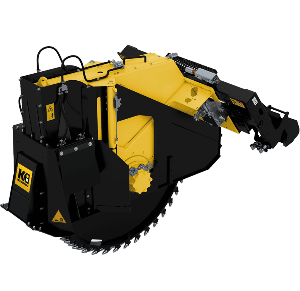 Noleggio escavatrice a ruota per asfalto T 600 per minipala cingolata TL250. Permette di lavorare su superfici dure o compatte come asfalto, cemento e roccia.