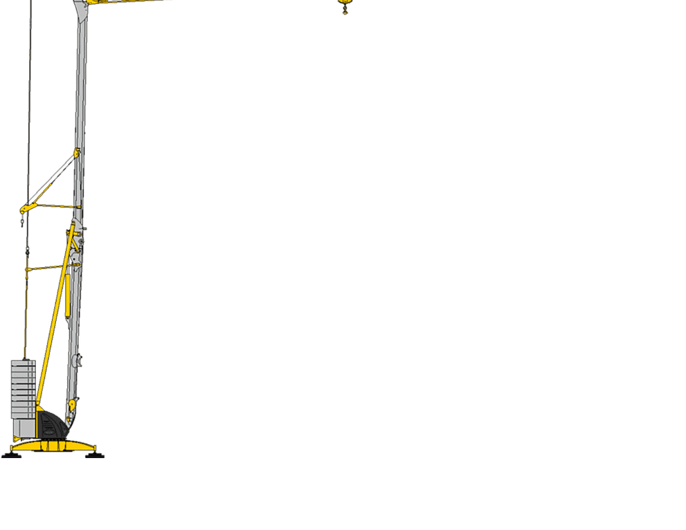 Noleggio gru idraulica automontante con braccio da 30 metri e altezza sotto gancio di 22 m. La portata massima è di 4.000 kg e la portata in punta di 1.100 kg.