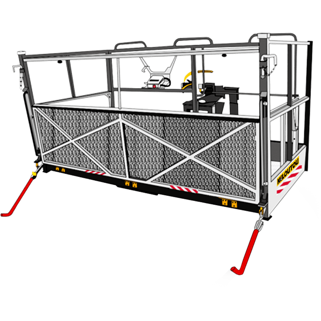 Noleggio piattaforma aerea trilaterale con apertura frontale per sollevatori telescipici frontali e rotativi Merlo. Portata 800 kg.