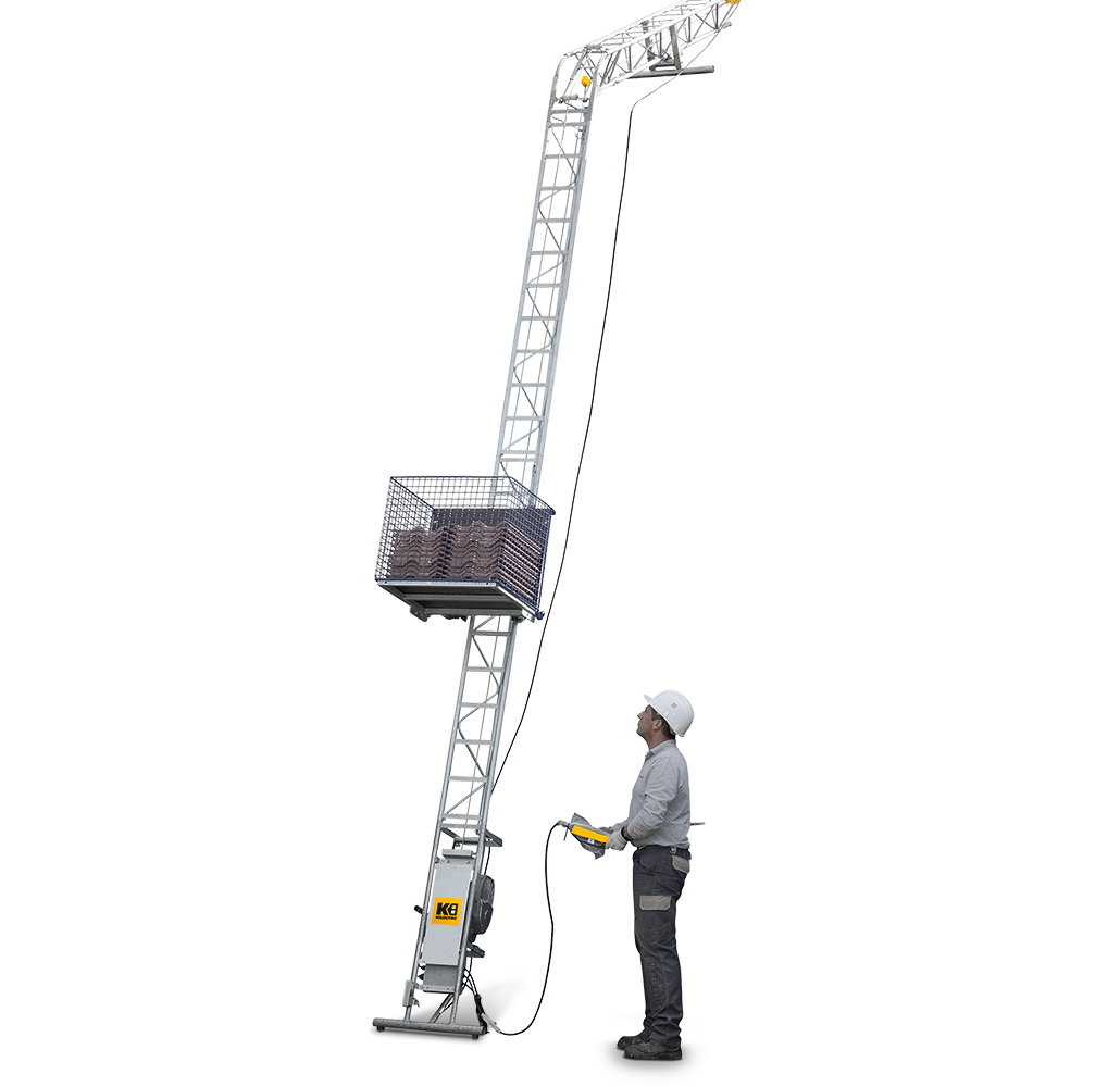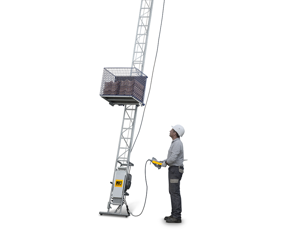 Questo sollevatore elettrico per piastrelle è ideale per lavori di copertura: posa di tegole, lavori di impermeabilizzazione, ecc. La massima altezza di sollevamento è15m, mentre la velocità di sollevamento (18 m/min) e la capacità di carico del cassonetto (150 kg), garantiscono un’ottima produttività e un notevole risparmio di tempo.
