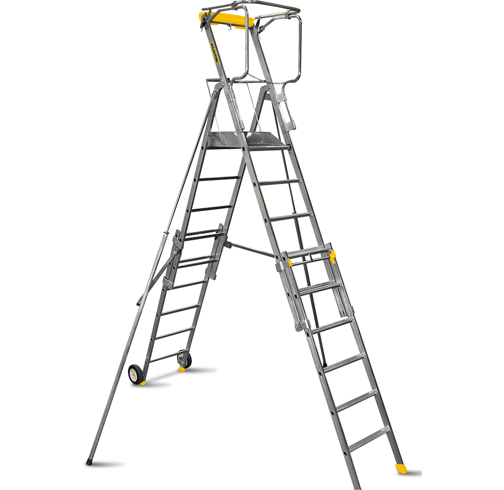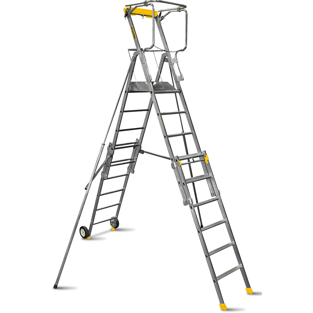 Questa scaletta leggera e robusta ha 4 altezze regolabili e progettata per lavori a bassa quota in posizione fissa. Dotata di gradino e di pavimento antiscivolo 50×40 cm oltre che di un comodo ripiano porta utensili, ha la portata 150 kg. Le due ruote di 200 mm permettono di spostarla agevolmente.
