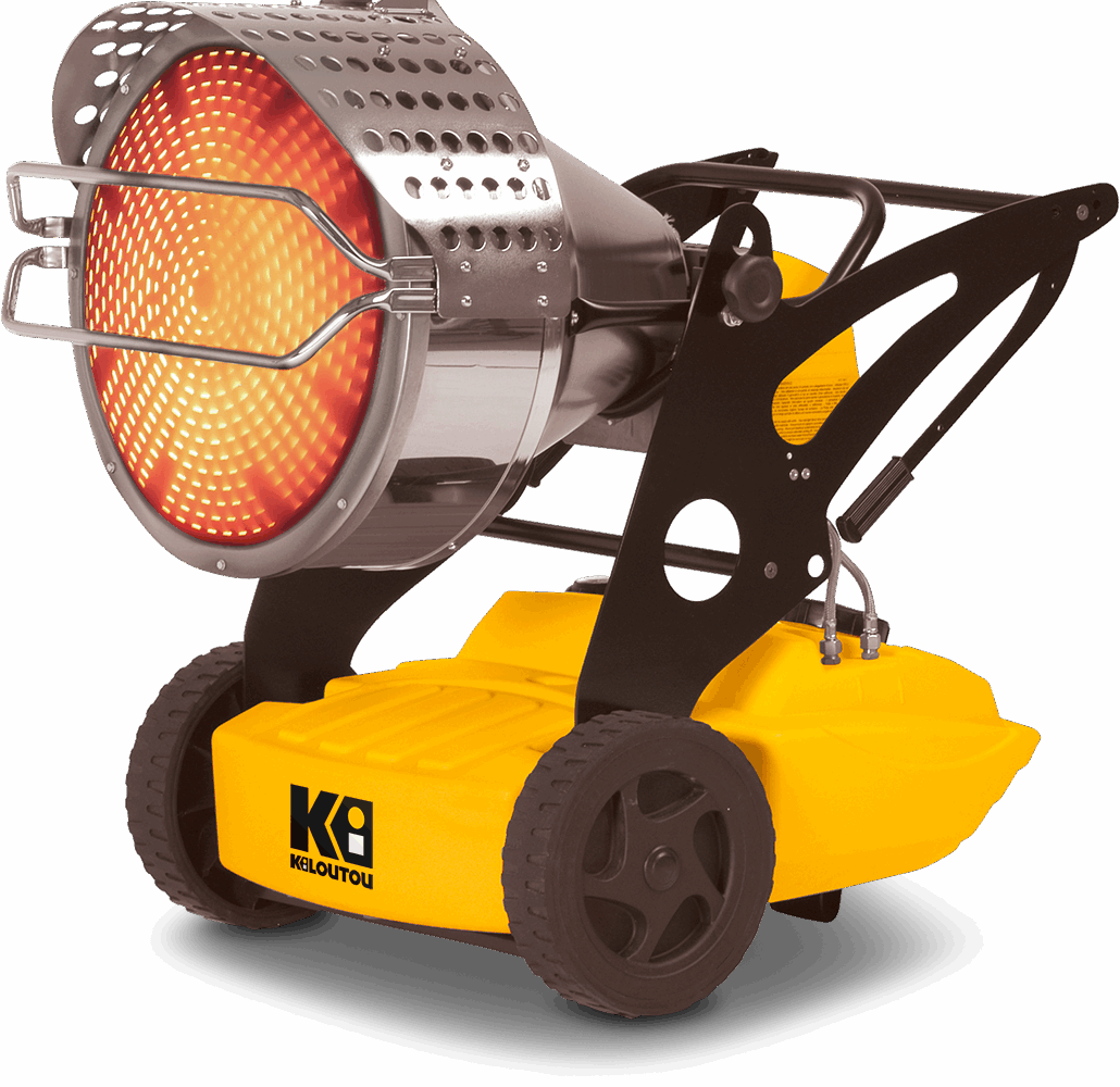 Questa stufa mobile con radiazione a infrarossi è la soluzione ideale per il riscaldamento o il raffreddamento di aree o postazioni di lavoro all’aperto, in edifici di grandi dimensioni o in locali ben ventilati (cantieri edili, garage, officine, magazzini, fabbriche, banchine di carico, ecc.). Eroga una potenza di 36,7 kW (1° stadio) e 45,5 kW (2° stadio) e l’efficienza termica e del 100%. La combustione è pulita, priva di fumo e con poco odore, perché i gas bruciati vengono calcinati sulla piastra radiante. La stufa è dotata un serbatoio di 65 l. Progettata per la massima mobilità, ha un telaio robusto e grandi ruote per i suoli irregolari, cavalletto pieghevole che aumenta il braccio della leva e agevola la movimentazione, ganci per gru.