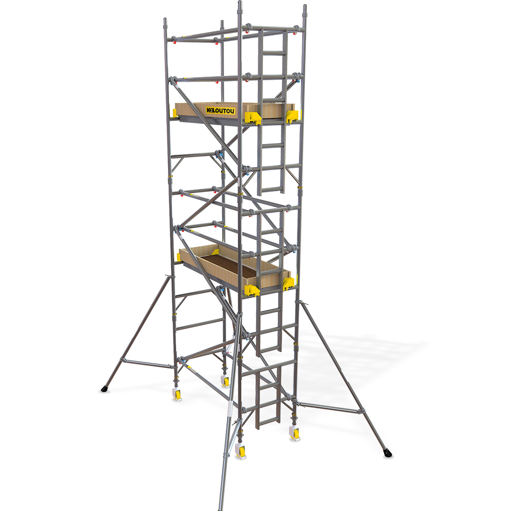Noleggio trabattello da 7 m e dimensioni 2,40×1,30 m ideale per imbiancatura e manutenzione. Realizzato in acciaio e alluminio, è stabile, sicuro e può essere trasportato facilmente in cantiere, passando per porte standard e corridoi.