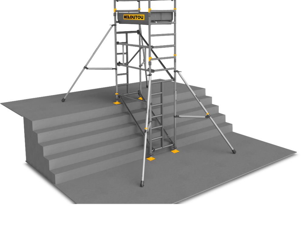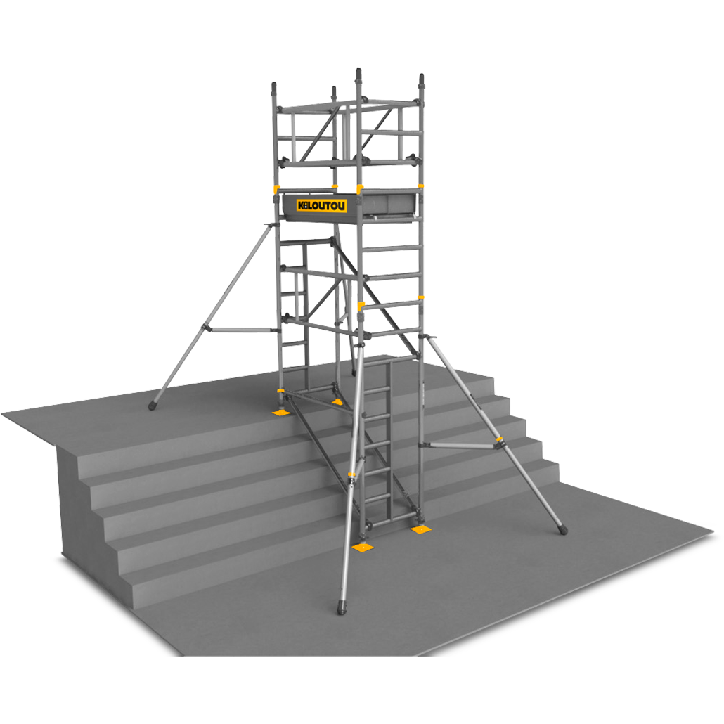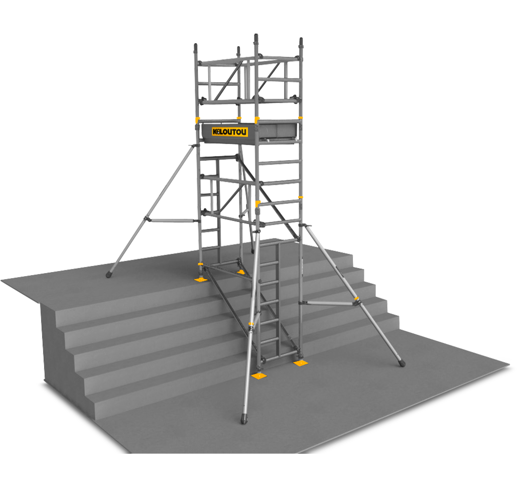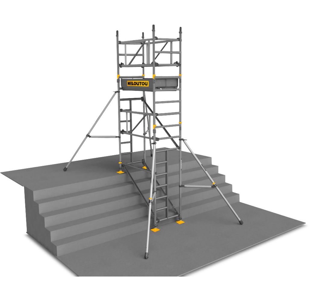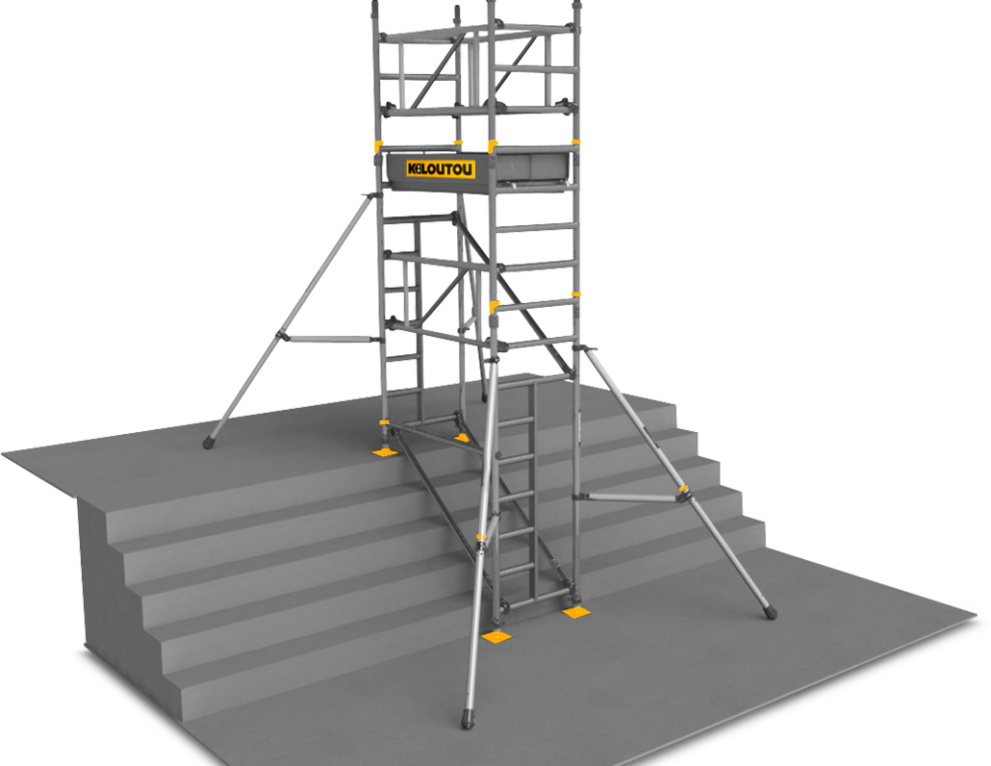 Costruita in alluminio, è ideale per dipintori e installatori d’impianti. La portata è di 275 kg e l’operatore accede in altezza tramite una botola. I sottostanti montanti sono dotati di passaggio in modo che le scale possano continuare ad essere utilizzate anche durante la fase dei lavori.