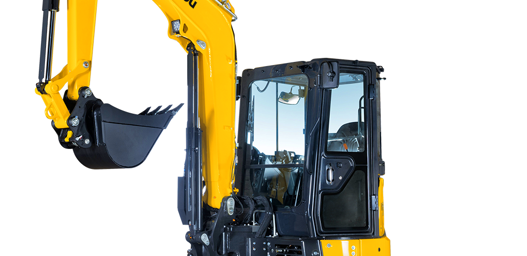 Minikoparka ze skrzynią obracaną w obrysie maszyny to wszechstronny sprzęt, który sprawdzi się szczególnie podczas prac w ciasnych przestrzeniach przy kopaniu fundamentów i rowów kanalizacyjnych oraz uprzątaniu wykopanego materiału. Umożliwia również podnoszenie ładunków do 2417 kg. Ogólnie rzecz biorąc, jej najczęstsze zastosowania to wykopy, wyrównywanie gruntu, przerzucanie materiału, kopanie rowów i załadunek. Minikoparka jest wyposażona w silnik wysokoprężny 41 KM i zbiornik o pojemności 64 litrów. Gumowe gąsienice o szerokości 40 cm wytłumiają drgania i generują mniej hałasu niż metalowe łańcuchy.
