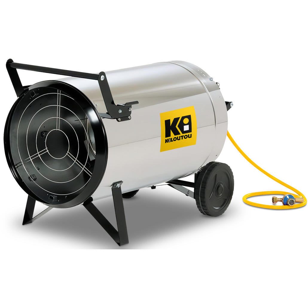 Ta nagrzewnica gazowa 230 V / 93 500 kcal/h z bezpośrednim spalaniem może ogrzać kubaturę do 1460 m³. Ten typ nagrzewnicy zasysa otaczające powietrze za pomocą wentylatora elektrycznego (230 V), ogrzewa główny strumień poprzez bezpośrednie spalanie za pomocą palnika gazowego i wdmuchuje ciepłe powietrze do pomieszczenia. W rezultacie podczas spalania gazy spalinowe i uwolniona wilgoć są dostarczane do pomieszczenia w tym samym czasie, co ogrzane powietrze. Pomieszczenie, które ma być ogrzewane, wymaga odpowiedniej wentylacji, aby spaliny mogły się ulatniać i aby zapewnić wystarczający dopływ tlenu. Uwaga: ze względu na wilgoć uwalnianą podczas pracy, ta nagrzewnica gazowa nie może być używana do osuszania placów budowy.