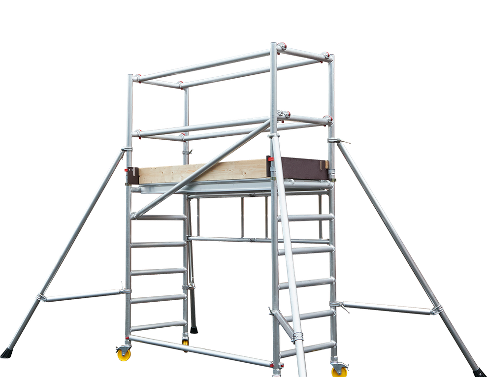 Lekkie rusztowanie z aluminium można z łatwością przemieszczać w miejscu robót. Składa się ze składanej podstawy na kółkach wyposażonych w hamulce, podestu z klapą, 4 przypór i 2 poręczy, złączy i stabilizatorów. Umożliwia bezpieczną pracę na wysokości do 3,7 m (podłoga na wysokości 1,7 m) na obszernym podeście o powierzchni 1,4 m². Maksymalne obciążenie podestu wynosi 200 kg, co obejmuje pracowników i sprzęt/materiały.