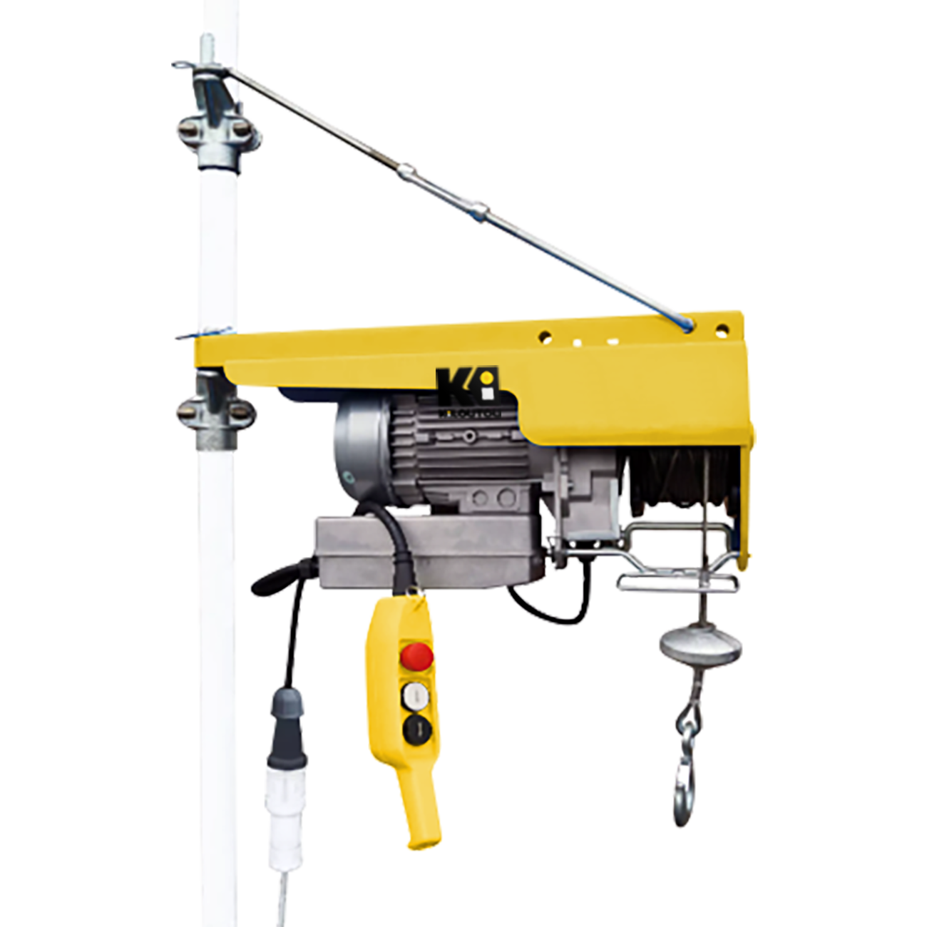 Do wciągarki dołączony jest wyciąg i mocowania do zainstalowania na rusztowaniu rurowym (średnica rury konstrukcyjnej 50 mm).