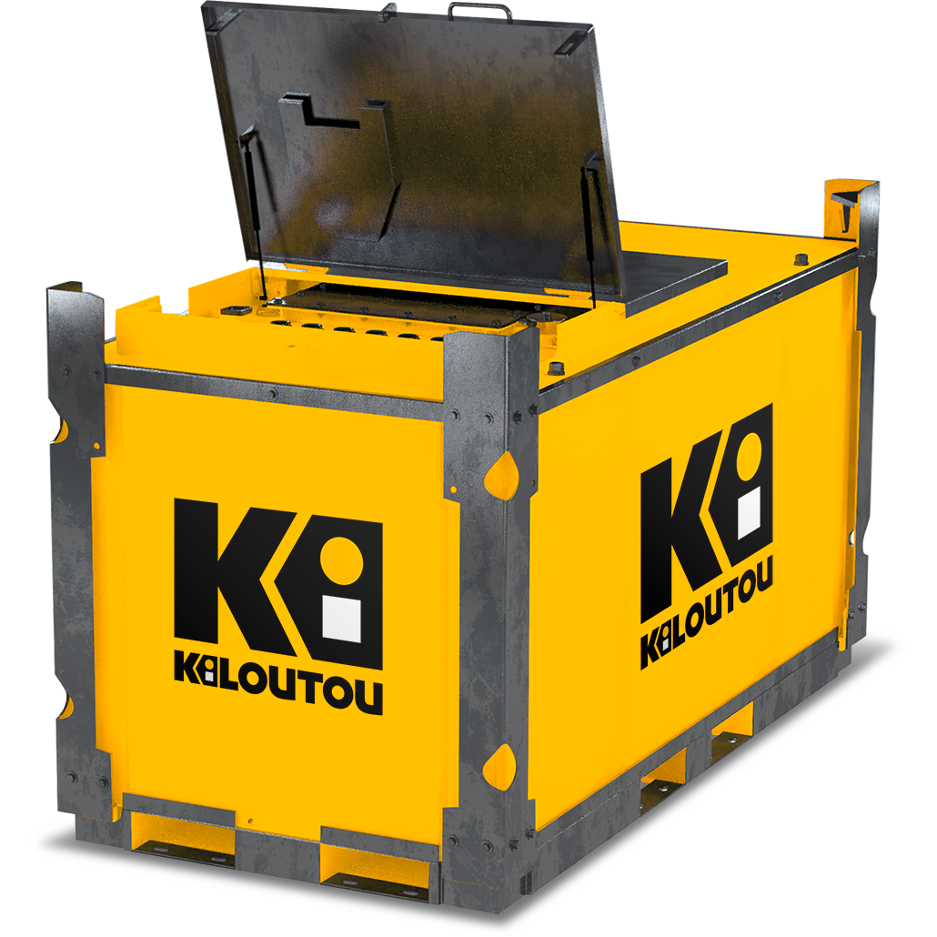 Zbiornik do przechowywania i dystrybucji oleju napędowego (2143 l) z wbudowaną pompą do dystrybucji. Zbiornik jest wzmocniony i łatwy w obsłudze.